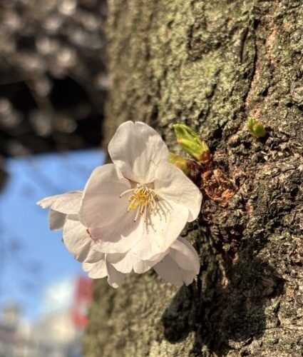 そんな中、幹の低いところでひっそりと咲いていた桜に、ふと目が留まりました。